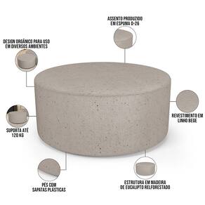 Características: Estrutura em madeira de reflorestamento de eucalipto. Revestimento em Linho de alta qualidade na cor Bege. Assento com espuma D-26 de alta resistência. Design orgânico para uso em diversos ambientes. Pés sapatas plásticas. Peso suportado: Até 120 kg.