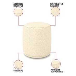 Quantos puffs você tem em casa? Nenhum? Então está na hora de mudar isso! Nada como chegar em casa, relaxar e ter um cantinho especial para esticar os pés, não é mesmo? Com o Puff Malu, não tem segredo, seus momentos de descanso serão garantidos. Além da sua simetria artística e curvas suaves, ele contém um revestimento em Linho que harmoniza com qualquer ambiente. Pode ser utilizado em sala de estar, recepções, escritórios, lojas, espaços comerciais, ou qualquer outro espaço que você queira decorar com estilo e bom gosto. Ele tem uma estrutura em madeira de reflorestamento eucalipto, que garante a resistência e a sustentabilidade do produto. Ele suporta até 120 kg de peso, podendo ser utilizada por pessoas de diferentes biotipos. Ele tem um acabamento reforçado e espuma de qualidade D23, que oferece maciez e aconchego. As sapatas plásticas (fixa) são pequenas proteções colocadas na base dos pés para evitar que eles risquem ou danifiquem o chão. O Puff Malu é um móvel de alta qualidade, que exala sofisticação e conforto. Ele é fácil de transportar, pois tem um peso leve e um tamanho compacto. Ele vai trazer charme, conforto incomparável e durabilidade para o seu ambiente. Corra e garanta seu Kit 2 Puffs agora mesmo!