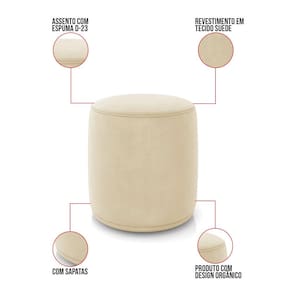 Quantos puffs você tem em casa? Nenhum? Então está na hora de mudar isso! Nada como chegar em casa, relaxar e ter um cantinho especial para esticar os pés, não é mesmo? Com o Puff Malu, não tem segredo, seus momentos de descanso serão garantidos. Além da sua simetria artística e curvas suaves, ele contém um revestimento em Suede que harmoniza com qualquer ambiente. Pode ser utilizado em sala de estar, recepções, escritórios, lojas, espaços comerciais, ou qualquer outro espaço que você queira decorar com estilo e bom gosto. Ele tem uma estrutura em madeira de reflorestamento eucalipto, que garante a resistência e a sustentabilidade do produto. Ele suporta até 120 kg de peso, podendo ser utilizada por pessoas de diferentes biotipos. Ele tem um acabamento reforçado e espuma de qualidade D23, que oferece maciez e aconchego. As sapatas plásticas (fixa) são pequenas proteções colocadas na base dos pés para evitar que eles risquem ou danifiquem o chão. O Puff Malu é um móvel de alta qualidade, que exala sofisticação e conforto. Ele é fácil de transportar, pois tem um peso leve e um tamanho compacto. Ele vai trazer charme, conforto incomparável e durabilidade para o seu ambiente. Corra e garanta seu Puff agora mesmo!