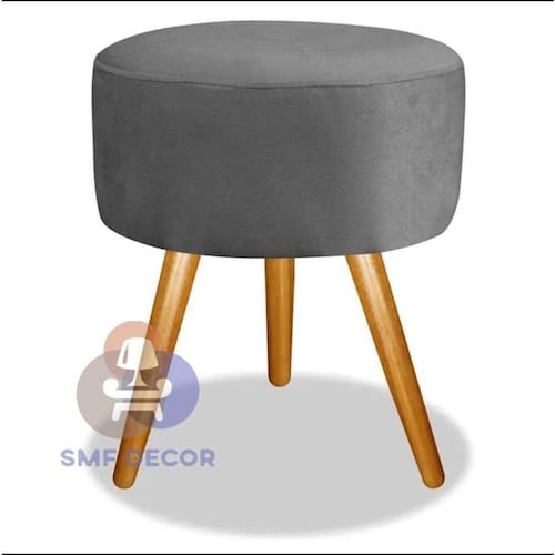 Dimensões do Produto: Altura: 45 cm Largura: 40 cm Profundidade: 40 cm Características do Produto: Material da Estrutura: Madeira de eucalipto Chapa: MDP 15mm; Assento: Espuma Densidade 23 Material dos Pés: Pés Palitos em Madeira trabalhada, levemente Inclinados; Quantidade de Pés: 3 Pés; Revestimento: Tecido Suede Veludo Light Peso Suportado: até 100 Kg;