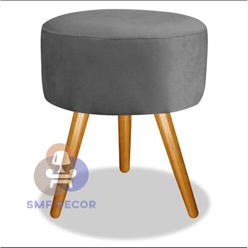 Puff Redondo Pés Palito Cinza - Puff Decorativo Redondo - Conforto e Estilo para o Seu Ambiente
