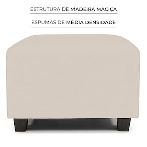 A estrutura do puff é produzida com madeira maciça, seu revestimento é feito com espumas de média densidade e percintas elásticas.