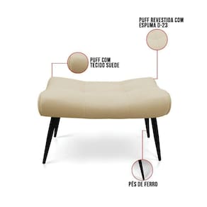 Saindo do forno, nosso lançamento Puff Sher! Em primeira mão, a maior tendência do momento, ideal para residências, áreas corporativas, entre outros. Afinal é uma excelente aposta, para você que busca por um visual bastante atual. Sofisticação é o que define essa linda poltrona, com acabamento impecável e um design inovador, perfeita para seu momento de descanso. Estrutura em madeira de eucalipto proveniente de reflorestamento, espuma de alta qualidade D-23, tecido Suede no tom Bege, e os pés palito de ferro super duráveis e resistentes. Uma peça dessa em seu cômodo pode ser muito interessante para tornar o ambiente ainda mais surpreendente e refinado. Que tal adquiri-la antes de todo mundo?