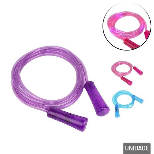 Pula Corda 2m de Plástico Color Led Pula Corda 2m de Plástico Color LED. Disponível nas cores: Azul, Roxo e Rosa. Utiliza 3 baterias AG13/ LR44 (Incluídas).\nMarca : DM Tipo de material : Plástico Cores ou Estampa : Color Dimensões do Produto : 3 X 200 X 3 CM Dimensões da Embalagem : 30 X 23 X 3,5 CM Peso Bruto (Gramas) : 0.156 Número do certificado INMETRO : 004 474/2022 Marca: Não Informado