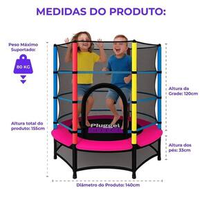 Essa Cama Elástica possui uma altura de 155cm, suporta até 80kg e é recomendada para indivíduos de 3 anos ou mais, proporcionando uma diversão contínua em que os pais podem participar com os filhos. Ela também é ideal para ser utilizada em locações, residências, escolas, brinquedotecas, buffets, hotéis, clubes, centros esportivos, entre outros.
