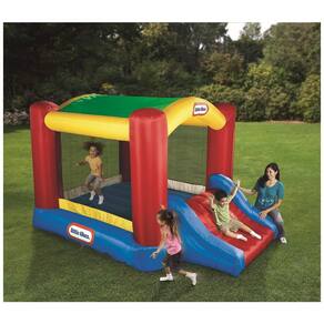 SALTO PARA ALEGRIA Salte, deslize e salte nesta incrível casa de rejeição coberta com slide de saída anexado FEITO NA FORMA O dossel arqueado oferece sombra constante para conforto, enquanto ainda oferece muita sala de salto E DIVERTIMENTO Três painéis de malha mantêm as crianças e permitem que os pais assistam à diversão até três crianças ao mesmo tempo saltando no interior de 2,1 x 1,8 metros VIAGEM NO LUGAR Estacas incluídas antes do segurança para um local, enquanto o ventilador para serviços pesados fornece fluxo de ar contínuo para manter as crianças pulando ZENAMENTO DE VAZIO Feito de materiais resistentes a perfurações e inclui bolsos de malha para sapatos. Infla e esvazia rapidamente para grande diversão e fácil zenamento Marca: Não Informado