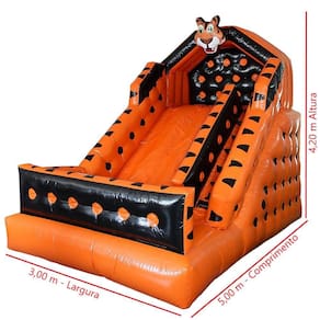 Esse Tobogã Inflável Tigrão é perfeito para locação e uso doméstico. É feito com lona vinílica super resistente, das melhores marcas do Brasil, garantindo segurança, conforto e durabilidade.