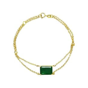 A pulseira Esmeralda em Ouro 18k é uma verdadeira obra-prima de joalheria. Feito com precisão e cuidado, esse anel apresenta uma impressionante pedra preciosa de esmeralda retangular, acentuada pelo brilho do Ouro.