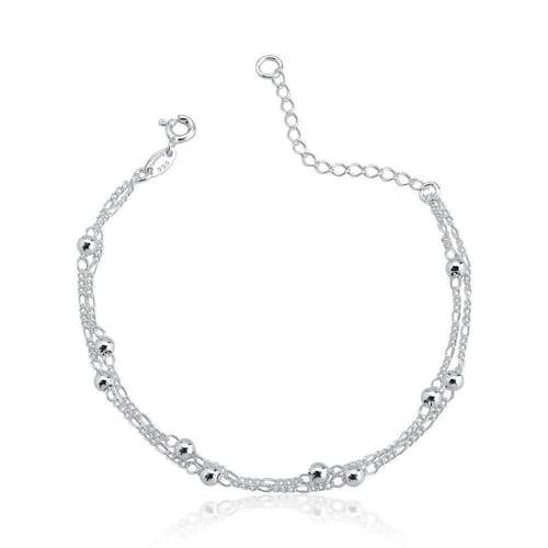 Pulseira 2 Correntes Bolas 3mm Prata 925