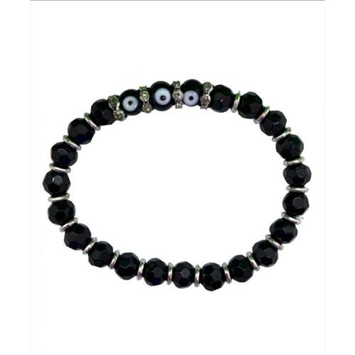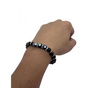 Pulseira 3 Olho Grego Preta Prateada Cristal e Silicone