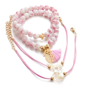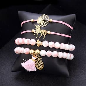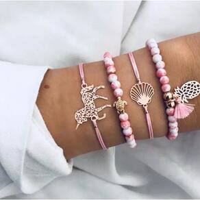Pulseira 4 peças conjunto rosa abacaxi unicórnio concha