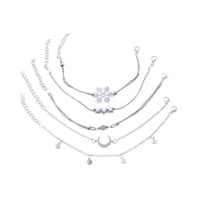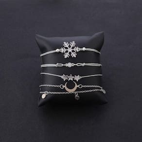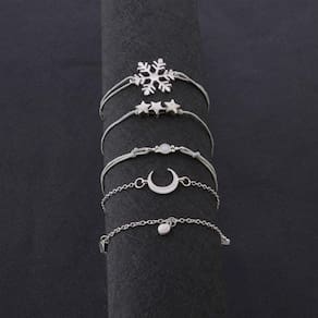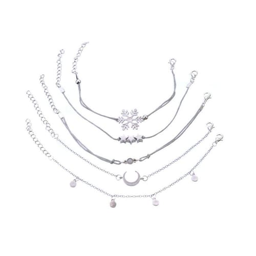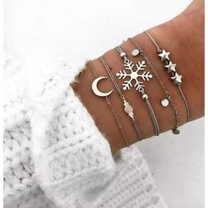 Pulseira 5 peças conjunto prateado floco de neve lua estrelas