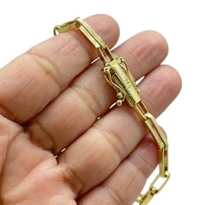 Pulseira Alongado 6mm Banhado a Ouro 18K Premium Detalhes do Produto: Material: ligas metálicas de alta qualidade, especialmente tratadas para fixação e absorção do ouro, com acabamento em verniz protetor. Aparência: visual idêntico ao ouro maciço. Produção: artesanal, com atenção meticulosa aos detalhes. Banho: 10 camadas espessas de ouro 18k, finalizadas com verniz antialérgico . Elos: soldados varia conforme o modelo . Pedras: zircônias brilhantes cravejadas quando aplicável . Tamanhos Disponíveis: Cordões Masculinos: 70cm padrão e 60cm sob consulta/Pedido Via Chat . Cordões Femininos: 50cm padrão e 45cm sob consulta/Pedido Via Chat . Pulseiras: 21cm padrão ; tamanhos de 18cm a 23cm sob consulta/Pedido Via Chat. Pingentes: conforme imagens; consulte para mais detalhes via chat. Espessuras Recomendadas para Cordões / Pingentes: P: 1mm a 4mm M: 4mm a 8mm G: 6mm a 13mm Gg: 12mm a 18mm Incluso na Compra: Saquinho de organza para armazenamento seguro. Caixa elegante, perfeita para presente. Cupom de desconto para a próxima compra. Flyer com outros produtos da coleção. Carta de agradecimento personalizada. Adesivo da marca ToJoia18k. Informações Adicionais: : 6 meses termos acompanham o produto . Devolução: 7 dias para devolução sem questionamentos. Envio: despacho em até 24 horas úteis após confirmação do pagamento. Cuidados com a Peça: Evite contato com produtos químicos; aguarde o perfume secar antes de usar. Evite contato com shampoo, condicionadores e suor excessivo. Armazene em local seco, preferencialmente no saquinho de organza fornecido. Uso no mar e piscina é permitido; lave com água corrente e sabão neutro após. Por que Escolher a ToJoia18k Semi-joias luxuosas que combinam estilo, qualidade e sofisticação. Banho espesso de ouro 18k, garantindo brilho duradouro e acabamento impecável. Design exclusivo e produção artesanal, perfeitos para qualquer ocasião. Materiais premium que asseguram durabilidade. Ao escolher uma semi-joia ToJoia18k, você investe em qualidade, elegância e uma experiência única. Aguardamos sua compra Observação: pode ocorrer variação no fecho raramente . Imagens reais, sem edição. Qualquer dúvida, estamos à disposição para esclarecimentos. Marca: Não Informado