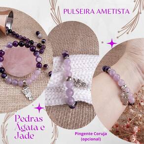 Pulseira Ametista Ágata Roxa Jade Lilás pingente Coruja Pulseira na cor Ametista em Pedras Naturais Ágata Roxa e Jade Lilás 8mm com Pingente Coruja Confeccionado artesanalmente. Versátil, Casual e fácil de combinar Todo o estilo e intuição imantados nesta linda Pulseira com 18 cm de comprimento cada. Pedra Natural, a peça possuiu um acabamento de extrema qualidade, com detalhes que reúnem elegância, beleza e design exclusivo para dar um toque especial ao look. A escolha perfeita para quem gosta de ter um acessório delicado para ser utilizado em qualquer ocasião. Especificações: Material: Mineral Característica: Magnético : 6 meses contra defeitos de fabricação Pingente: Coruja prata Cor: Ametista Medida Corrente: 18 cm Peso: 30 gr. Aproximadamente Sobre a cor Ametista: - Poderosa pedra protetora contra energias negativas densas; - Utilizado desde a aintiguidade para proteger o espírito; - Desintoxica o corpo e a alma, nos tornando mais serenos e tranquilos; - Aguça a intuição e elevação espiritual; - Melhora o sono, nos deixando mais dispostos - Pedra dos signos: Peixes, Cancer e Leão - profissão: Sobre a pedra Agata Roxa: - Pedra da sorte, Utilizado para trazer coragem e segurança; - Auto-confiança: - Senso de justiça; - Tomada de decições; - Criatividade Para manter o brilho e a cor da sua joia, são necessários alguns cuidados simples - Não molhar e nem deixar em contato com cosmético, perfumes ou produtos químicos; - Limpar com flanela e guardar em local seco; - Evitar atritos e grandes impactos ou quedas; - Não enroscar a peça em algum outro objeto Sobre a Encanto das Contas: Sempre em sintonia com as melhores vibrações, as criações da Encanto das Contas são produzidas dentro de cuidadosas normas de qualidade. Desde a busca das melhores pedras até a pubicação de nossas coleções, todo o processo de confecção dos Japamalas é feito pensando em encantar e atingir a satisfação plena de quem as recebe, fazendo parte dos momentos de meditação, conexão, elevação e autocuidado. : As pedras e/ou sementes são naturais Sim, só trabalhamos com sementes e pedras naturais, selecionadas e de qualidade. Prazo para postagem Até 24 horas depois da confirmação do Pedido observações: - Nossas peças são confeccionadas artesanalmente, uma a uma, por este motivo podem ocorrer alterações nas texturas e tonalidades das cores. Marca: Não Informado Ean: 7795256581337