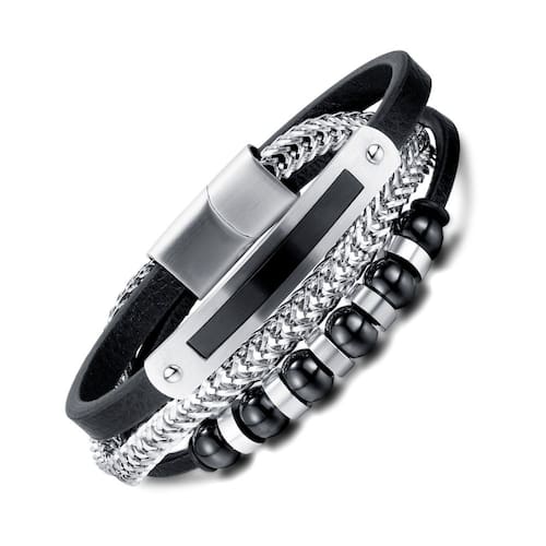Tamanho: 210 x 9 mm Peso: 33 g Material: aço inoxidável/PU Assimetric Statement Design — Combina placas de metal polido, contas redondas e tranças em camadas em um layout assimétrico atraente. Composição multimaterial — Feita de couro PU, aço inoxidável e miçangas decorativas para uma textura rica e contraste visual. Fecho magnético — Possui um forte fecho magnético de aço inoxidável que fornece fixação segura e uso diário conveniente. Urban Punk Appeal — Projetada para homens que abraçam a moda ousada, esta peça adiciona estrutura e atitude aos looks de streetwear ou club. Ajuste robusto e confortável — mede 210 mm x 9 mm e pesa 33 g, oferecendo uma presença sólida no pulso e mantendo uma usabilidade confortável.