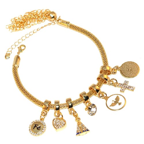 Pulseira Berloques Religiosa Oração Aparecida Folheado 18k