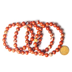 Tipo de Pedra: Jaspe Africano NaturalCor: Misto de tons terrosos e naturais (variações únicas em cada peça)Formato: Bolinhas polidas com furo centralTamanho das Pedras: 8 mmFio: Silicone elástico resistente e confortávelTamanho Único: Ajustável à maioria dos pulsos
