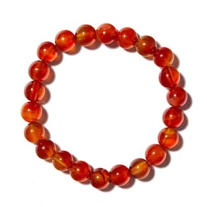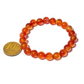 Nome das Pedras: Ágata Cornalina (Ágata de Fogo) Tamanho das Bolinhas: 8 mm cada, meticulosamente lapidadas para garantir alto brilho e beleza. Comprimento da Pulseira: 20 cm (tamanhos podem variar conforme estoque). Peso Médio: 12 gramas, leve e confortável para o uso diário. Montagem: Fios de silicone de alta qualidade, permitindo ajustes fáceis para diferentes tamanhos de pulso. Basta trocar o silicone ou remover pedras para adaptar ao seu conforto. Origem: Cristais de Curvelo, MG – lapidação artesanal que destaca a beleza natural das pedras.