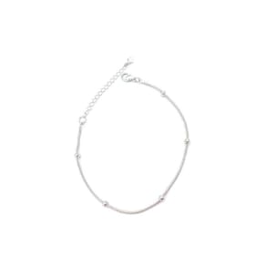 Material: Folheado a Ródio Branco Tamanho da corrente: 16cm com extensor de 5cm Diâmetro das bolinhas: 3mm