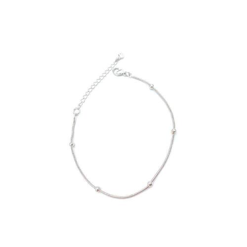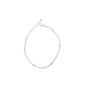 Folheada a ródio branco, ela possui uma corrente de rabo de rato, repleta de bolinhas de 3mm espalhadas por toda a extensão. É uma pulseira que vai com tudo e pode ser usada sozinha ou combinada com outras pulseiras, braceletes ou relógios.