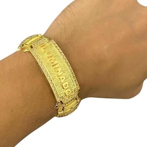 Pulseira Bracelete 18mm Personalizado Iluminado Ouro 18K Detalhes do Produto: Material: ligas metálicas de alta qualidade, especialmente tratadas para fixação e absorção do ouro, com acabamento em verniz protetor. Aparência: visual idêntico ao ouro maciço. Produção: artesanal, com atenção meticulosa aos detalhes. Banho: 10 camadas espessas de ouro 18k, finalizadas com verniz antialérgico . Elos: soldados varia conforme o modelo . Pedras: zircônias brilhantes cravejadas quando aplicável . Tamanhos Disponíveis: Cordões Masculinos: 70cm padrão e 60cm sob consulta/Pedido Via Chat . Cordões Femininos: 50cm padrão e 45cm sob consulta/Pedido Via Chat . Pulseiras: 21cm padrão ; tamanhos de 18cm a 23cm sob consulta/Pedido Via Chat. Pingentes: conforme imagens; consulte para mais detalhes via chat. Espessuras Recomendadas para Cordões / Pingentes: P: 1mm a 4mm M: 4mm a 8mm G: 6mm a 13mm Gg: 12mm a 18mm Incluso na Compra: Saquinho de organza para armazenamento seguro. Caixa elegante, perfeita para presente. Cupom de desconto para a próxima compra. Flyer com outros produtos da coleção. Carta de agradecimento personalizada. Adesivo da marca ToJoia18k. Informações Adicionais: : 6 meses termos acompanham o produto . Devolução: 7 dias para devolução sem questionamentos. Envio: despacho em até 24 horas úteis após confirmação do pagamento. Cuidados com a Peça: Evite contato com produtos químicos; aguarde o perfume secar antes de usar. Evite contato com shampoo, condicionadores e suor excessivo. Armazene em local seco, preferencialmente no saquinho de organza fornecido. Uso no mar e piscina é permitido; lave com água corrente e sabão neutro após. Por que Escolher a ToJoia18k Semi-joias luxuosas que combinam estilo, qualidade e sofisticação. Banho espesso de ouro 18k, garantindo brilho duradouro e acabamento impecável. Design exclusivo e produção artesanal, perfeitos para qualquer ocasião. Materiais premium que asseguram durabilidade. Ao escolher uma semi-joia ToJoia18k, você investe em qualidade, elegância e uma experiência única. Aguardamos sua compra Observação: pode ocorrer variação no fecho raramente . Imagens reais, sem edição. Qualquer dúvida, estamos à disposição para esclarecimentos.