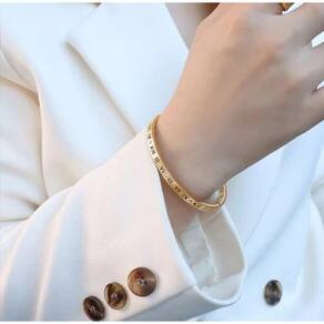 Pulseira bracelete feminino modelo algarismo romanos cravejado com pedras de cristal e fecho trava confeccionado em aço inox 316L banhado a ouro.Pulseira de alta qualidade pois trabalhamos com material premium que garante a sofisticação e o luxo da sua semi joia.Semi joia de excelente qualidade, linda e moderna que pode compor looks de diferentes estilos e ocasiões.Detalhes do Produto Modelo : Moda Bracelete De Aço inoxidávelTipo : PulseirasQuantidade : 1Material : Aço inoxidávelCor : Prata / OuroTipo de Fecho : Dobre Sobre FechoGênero : Feminino/ MasculinoTamanho : 6.5X5.2cm Largura do Bracelete : 6mm Diamentro: 6mm Tamanho do Pulso : 20cm Numeros: Romanos Algarismo Cor Pedras Zircônias : Cravejado Micro Zircônia CristaisOcasião: Aniversário, Festa, Punk,Casamento,Presente, Elegante