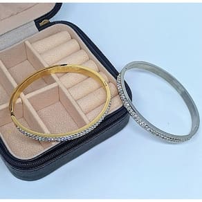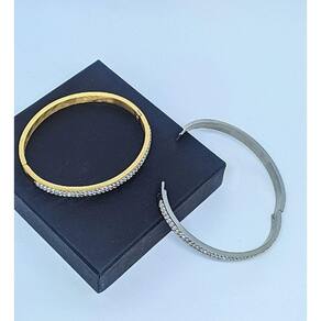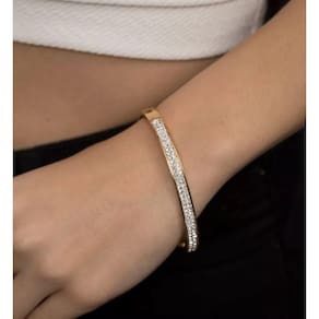 Pulseira bracelete feminino modelo cravejado com pedras de cristal e fecho trava confeccionado em aço inox 316L banhado a ouro.Pulseira de alta qualidade pois trabalhamos com material premium que garante a sofisticação e o luxo da sua semi joia.Semi joia de excelente qualidade, linda e moderna que pode compor looks de diferentes estilos e ocasiões.Detalhes do Produto
