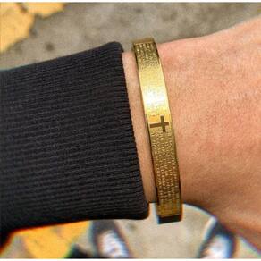 Pulseiras Aço Steel 316L Pai Nosso Dourado e Prateado . Pulseira Aço inox 316LOração Pai Nosso escrito a laser é uma ótima escolha para te deixar ainda mais estiloso(a).Pulseira para um estilo clássico e despojado. Não perdendo a elegância das cores prateadas e douradasTemos diversas variedades. Acesse e conheça:- Pulseira Aço 316L Dourado- Peça Antialérgica- Escrita a Laser- Oração Pai Nosso- Possui em uma das extremidades 6,3 cm e na extremidade menor 5,5 cm, com diâmetro interno de 18cm.Características Técnicas:Material: Aço Inoxidável 316L (Não Enferruja)Acabamento: Oração Pai Nosso escrita em alto relevoFecho: Fecho de trava por encaixeTamanho: Único (Para pulsos de 16 a 19 cm de circunferência)Gênero: Unissex (Masculino e Feminino)Cuidados com a peça:- Evite contato com a água frequentemente;- Evite produtos químicos.