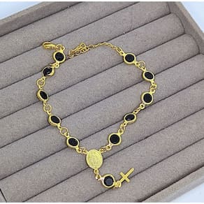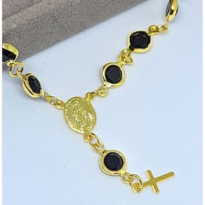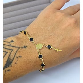 Marca: LVO Modelo: Preto/ Cristal Fecho: Lagosta, garantindo segurança ao usar Comprimento: 16 cm com extensor até 23 cm Largura: 6 mm Peso: 8 gramas Pedras: Contém 11 pedras de cristal que brilham lindamente Pingente: Nossa Senhora Aparecida com cruz, símbolo de fé e proteção