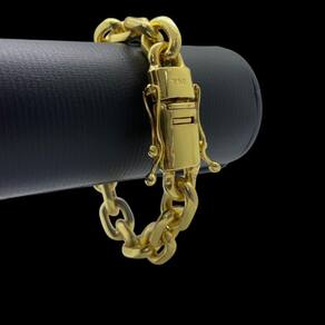 Pulseira Cadeado 18mm Banhado a Ouro 18K Marca 750 Detalhes do Produto: Material: ligas metálicas de alta qualidade, especialmente tratadas para fixação e absorção do ouro, com acabamento em verniz protetor. Aparência: visual idêntico ao ouro maciço. Produção: artesanal, com atenção meticulosa aos detalhes. Banho: 10 camadas espessas de ouro 18k, finalizadas com verniz antialérgico . Elos: soldados varia conforme o modelo . Pedras: zircônias brilhantes cravejadas quando aplicável . Tamanhos Disponíveis: Cordões Masculinos: 70cm padrão e 60cm sob consulta/Pedido Via Chat . Cordões Femininos: 50cm padrão e 45cm sob consulta/Pedido Via Chat . Pulseiras: 21cm padrão ; tamanhos de 18cm a 23cm sob consulta/Pedido Via Chat. Pingentes: conforme imagens; consulte para mais detalhes via chat. Espessuras Recomendadas para Cordões / Pingentes: P: 1mm a 4mm M: 4mm a 8mm G: 6mm a 13mm Gg: 12mm a 18mm Incluso na Compra: Saquinho de organza para armazenamento seguro. Caixa elegante, perfeita para presente. Cupom de desconto para a próxima compra. Flyer com outros produtos da coleção. Carta de agradecimento personalizada. Adesivo da marca ToJoia18k. Informações Adicionais: : 6 meses termos acompanham o produto . Devolução: 7 dias para devolução sem questionamentos. Envio: despacho em até 24 horas úteis após confirmação do pagamento. Cuidados com a Peça: Evite contato com produtos químicos; aguarde o perfume secar antes de usar. Evite contato com shampoo, condicionadores e suor excessivo. Armazene em local seco, preferencialmente no saquinho de organza fornecido. Uso no mar e piscina é permitido; lave com água corrente e sabão neutro após. Por que Escolher a ToJoia18k Semi-joias luxuosas que combinam estilo, qualidade e sofisticação. Banho espesso de ouro 18k, garantindo brilho duradouro e acabamento impecável. Design exclusivo e produção artesanal, perfeitos para qualquer ocasião. Materiais premium que asseguram durabilidade. Ao escolher uma semi-joia ToJoia18k, você investe em qualidade, elegância e uma experiência única. Aguardamos sua compra Observação: pode ocorrer variação no fecho raramente . Imagens reais, sem edição. Qualquer dúvida, estamos à disposição para esclarecimentos.