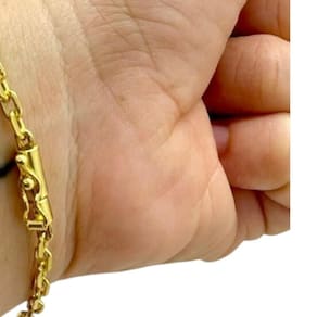 Pulseira Cadeado 3mm Fina Banhado a Ouro 18K Detalhes do Produto: Material: ligas metálicas de alta qualidade, especialmente tratadas para fixação e absorção do ouro, com acabamento em verniz protetor. Aparência: visual idêntico ao ouro maciço. Produção: artesanal, com atenção meticulosa aos detalhes. Banho: 10 camadas espessas de ouro 18k, finalizadas com verniz antialérgico . Elos: soldados varia conforme o modelo . Pedras: zircônias brilhantes cravejadas quando aplicável . Tamanhos Disponíveis: Cordões Masculinos: 70cm padrão e 60cm sob consulta/Pedido Via Chat . Cordões Femininos: 50cm padrão e 45cm sob consulta/Pedido Via Chat . Pulseiras: 21cm padrão ; tamanhos de 18cm a 23cm sob consulta/Pedido Via Chat. Pingentes: conforme imagens; consulte para mais detalhes via chat. Espessuras Recomendadas para Cordões / Pingentes: P: 1mm a 4mm M: 4mm a 8mm G: 6mm a 13mm Gg: 12mm a 18mm Incluso na Compra: Saquinho de organza para armazenamento seguro. Caixa elegante, perfeita para presente. Cupom de desconto para a próxima compra. Flyer com outros produtos da coleção. Carta de agradecimento personalizada. Adesivo da marca ToJoia18k. Informações Adicionais: : 6 meses termos acompanham o produto . Devolução: 7 dias para devolução sem questionamentos. Envio: despacho em até 24 horas úteis após confirmação do pagamento. Cuidados com a Peça: Evite contato com produtos químicos; aguarde o perfume secar antes de usar. Evite contato com shampoo, condicionadores e suor excessivo. Armazene em local seco, preferencialmente no saquinho de organza fornecido. Uso no mar e piscina é permitido; lave com água corrente e sabão neutro após. Por que Escolher a ToJoia18k Semi-joias luxuosas que combinam estilo, qualidade e sofisticação. Banho espesso de ouro 18k, garantindo brilho duradouro e acabamento impecável. Design exclusivo e produção artesanal, perfeitos para qualquer ocasião. Materiais premium que asseguram durabilidade. Ao escolher uma semi-joia ToJoia18k, você investe em qualidade, elegância e uma experiência única. Aguardamos sua compra Observação: pode ocorrer variação no fecho raramente . Imagens reais, sem edição. Qualquer dúvida, estamos à disposição para esclarecimentos. Marca: Não Informado