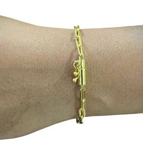 Pulseira Cadeado 5mm Alongado Fecho Canhão Banhado Ouro Detalhes do Produto: Material: ligas metálicas de alta qualidade, especialmente tratadas para fixação e absorção do ouro, com acabamento em verniz protetor. Aparência: visual idêntico ao ouro maciço. Produção: artesanal, com atenção meticulosa aos detalhes. Banho: 10 camadas espessas de ouro 18k, finalizadas com verniz antialérgico . Elos: soldados varia conforme o modelo . Pedras: zircônias brilhantes cravejadas quando aplicável . Tamanhos Disponíveis: Cordões Masculinos: 70cm padrão e 60cm sob consulta/Pedido Via Chat . Cordões Femininos: 50cm padrão e 45cm sob consulta/Pedido Via Chat . Pulseiras: 21cm padrão ; tamanhos de 18cm a 23cm sob consulta/Pedido Via Chat. Pingentes: conforme imagens; consulte para mais detalhes via chat. Espessuras Recomendadas para Cordões / Pingentes: P: 1mm a 4mm M: 4mm a 8mm G: 6mm a 13mm Gg: 12mm a 18mm Incluso na Compra: Saquinho de organza para armazenamento seguro. Caixa elegante, perfeita para presente. Cupom de desconto para a próxima compra. Flyer com outros produtos da coleção. Carta de agradecimento personalizada. Adesivo da marca ToJoia18k. Informações Adicionais: : 6 meses termos acompanham o produto . Devolução: 7 dias para devolução sem questionamentos. Envio: despacho em até 24 horas úteis após confirmação do pagamento. Cuidados com a Peça: Evite contato com produtos químicos; aguarde o perfume secar antes de usar. Evite contato com shampoo, condicionadores e suor excessivo. Armazene em local seco, preferencialmente no saquinho de organza fornecido. Uso no mar e piscina é permitido; lave com água corrente e sabão neutro após. Por que Escolher a ToJoia18k Semi-joias luxuosas que combinam estilo, qualidade e sofisticação. Banho espesso de ouro 18k, garantindo brilho duradouro e acabamento impecável. Design exclusivo e produção artesanal, perfeitos para qualquer ocasião. Materiais premium que asseguram durabilidade. Ao escolher uma semi-joia ToJoia18k, você investe em qualidade, elegância e uma experiência única. Aguardamos sua compra Observação: pode ocorrer variação no fecho raramente . Imagens reais, sem edição. Qualquer dúvida, estamos à disposição para esclarecimentos. Marca: Não Informado