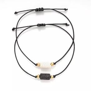 Pulseira Casal Fecho Dourado Pedras Preta Branca Q7786