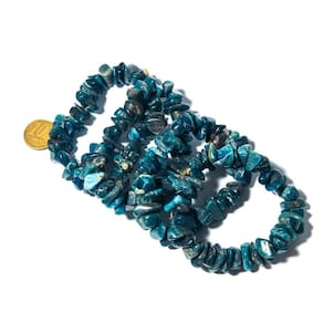 Pulseira de Apatita Azul Natural – Cascalho Rolado em Fio de Silicone Realce sua energia e estilo com a Pulseira de Cascalho de Apatita Azul Natural. Com seu tom azul intenso e brilho vítreo, essa joia artesanal se destaca pela elegância e pelas propriedades vibracionais. Produzida com pedras verdadeiras de garimpo e montada em fio de silicone elástico, oferece conforto, versatilidade e um encaixe perfeito em diferentes tamanhos de pulso. Um acessório leve, poderoso e cheio de personalidade – ideal para o uso diário ou para complementar composições mais sofisticadas. Detalhes do Produto: