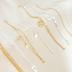 Tamanho: 17,5cm Classe da peça: Semijoia Garantia: Para o banho e defeitos da peça. Cuidados com sua Semi Jóia1. Evite o contato com produtos químicos2. Não passe perfume quando estiver com a peça. O perfume se for aplicado diretamente na peça, pode, com o tempo, acabar danificando a semi joia por conta da presença do álcool em sua composição. Sendo assim, o mais indicado é aplicar o produto e só depois de alguns minutos colocar sua semi joia favorita.3. Guarde com cuidado. Na hora de armazenar suas semi joias escolha sempre um local limpo e seco. Por isso, é importante evitar exposição exagerada ao sol, umidade, luz, contato com materiais perfumados e materiais tingidos.