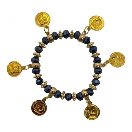 Pulseira cigana grafite cristal e silicone moedas Esta linda pulseira de fabricação da lua mística é confeccionada artesanalmente com cristais, pedras e elástico de silicone, o que lhe confere durabilidade, resistência, conforto e beleza. É adequada para usar em qualquer ocasião, com design elegante. Excelente para presentear, cheio de amor, carregando promessa e confiança, expressando bênçãos, proteção, sorte e apreciação. É um excelente presente para aniversários, graduações ou apenas ofertar a sorte àqueles que ama. Mude hoje mesmo o seu destino Características técnicas: Pulseira unisex Pedras e cristais: 8 mm Gênero: masculino/feminino Peso: 30 gramas Cuidados com seu acessório: Evite atrito entre as peças para não comprometer o visual. Cremes corporais, perfumes e óleos podem danificar seus acessórios. Utilize flanela macia e seca para limpeza de sua pulseira. Com esses cuidados sua peça terá uma maior vida útil.