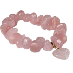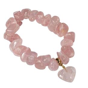 Pulseira Pedra Quartzo Rosa Rolada com coração Também em Quartzo Rosa lapidado e otimo Brilho, a montagem com furos ao meio da pedra unidas por fio silicone o que possibilta varias medidas de usuarios, além de facil reparo ou ajuste basta trocar o silicone e diminuir alguma pedra para uso infantil.