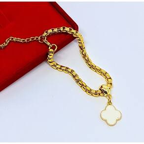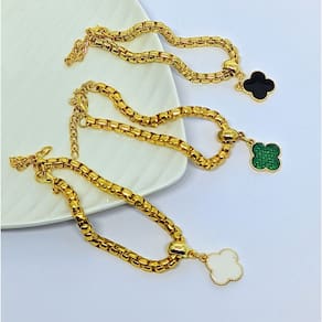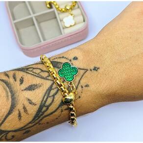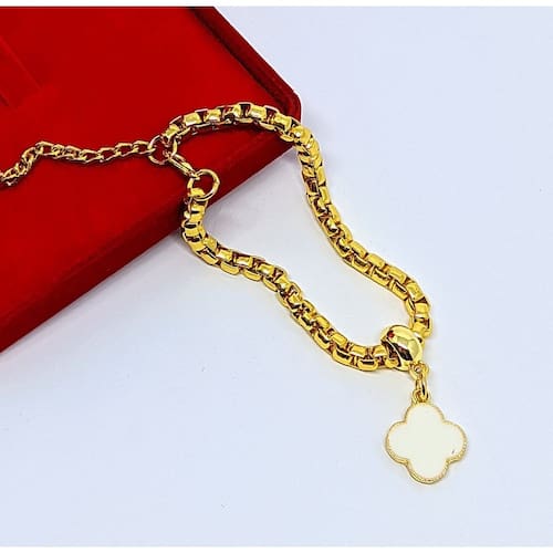 Pulseira Feminino modelo Elo veneziana Sinal Flor Trevo 4 folhas Corrente Folheado Ouro Dourado com Prata Tendência 2024 luxo