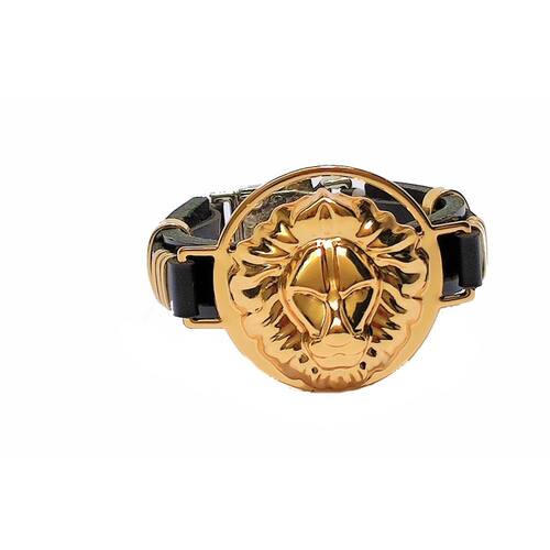 -01 pulseira em corino com partes em metal dourada.