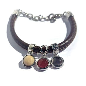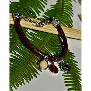 Pulseira Couro Marron Berloque Prateada Rodio Lizzy Fatin