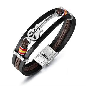 Tamanho: 22x1,3 cm Peso: 18 g Material: aço inoxidável/Design inspirado na guitarra PU — Apresenta um pingente de guitarra de aço inoxidável gravado com notas musicais e silhuetas, perfeito para amantes da música e entusiastas da moda punk. Estilo de couro em camadas — combina couro PU preto liso com fios trançados marrons para um acessório de pulso visualmente dinâmico e confortável. Fecho dobrável seguro — Equipado com um fecho durável de aço inoxidável para um fechamento confiável, permitindo fácil uso sem comprometer a segurança. Detalhes de realce colorido — Os detalhes dos anéis em vermelho, amarelo e preto adicionam um toque vibrante e jovem ao design geral ousado, fazendo com que ele se destaque. Apelo de rua — Projetado para homens que amam rock, cultura de rua ou joias personalizadas — ótimo para shows, festas ou uso diário.