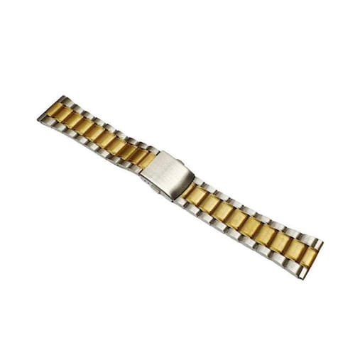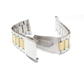 Pulseira de Relógio em Aço Bicolor 18mm Fecho Com Pusher Pulseira Relógio Aço 18mm Terminal Reto Fecho Com Pusher Modelo Asa Aço com Banho Dourado no meio e Aço escovado na Lateral Comprimento Total: 18cm Material: aço inoxidável Garanta sua pulseira enquanto você pode. Os estoques são limitados. O pacote inclui: