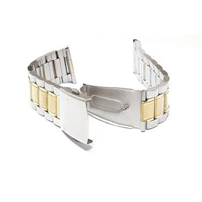 Pulseira de Relógio em Aço Bicolor 24mm Fecho Com Pusher Pulseira Relógio Aço 24mm Terminal Reto Fecho Com Pusher Modelo Asa Aço com Banho Dourado no meio e Aço escovado na Lateral Comprimento Total: 18cm Material: aço inoxidável Garanta sua pulseira enquanto você pode. Os estoques são limitados. O pacote inclui: