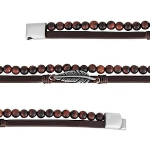 Cor: Marrom com uma pena de Aço e Pedra Natural Olho de Tigre