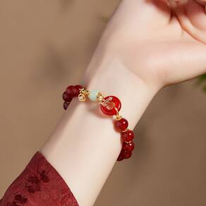 Tamanho: Diâmetro do cordão 8 mm Peso: 17 g Material: ágata Inspirado no simbolismo chinês — Apresenta um vibrante pingente de círculo de paz de ágata vermelha combinado com um motivo de peixe koi, representando harmonia, prosperidade e boa sorte na cultura chinesa. Acento de jade premium — Inclui um cordão de jade Hetian suave que adiciona um contraste natural ao tom vermelho profundo, elevando a elegância geral da pulseira. Design retrô leve e luxuoso — combina elementos clássicos chineses com estética moderna refinada, perfeita para ocasiões formais ou roupas do dia a dia. Feita para oferecer conforto — miçangas redondas de 8 mm e um peso total de 17 g tornam esta pulseira leve e ideal para uso durante todo o dia sem comprometer a sofisticação. Detalhes cuidadosamente feitos à mão — Espaçadores dourados e elementos pendentes simbólicos completam esta peça artística, enfatizando a individualidade e a identidade cultural.