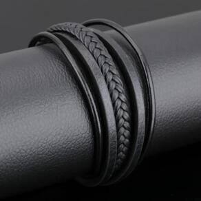 PULSEIRA DE NEGÓCIOS CLÁSSICA PARA HOMEM. O material da pulseira é feito de couro bovino e a parte central é tecida. O material da fivela é de aço inoxidável, que é muito forte. A superfície é tratada pelo processo de galvanoplastia e não desbota. Pulseira de moda masculina ou feminina, couro, estilo moderno\ nQualidade