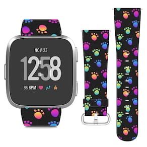 Pulseira de couro de reposição com estampa nobrand (Neon Dog and Cat Paws) compatível com Fitbit Versa 2/Versa/Versa Lite/Versa SE
