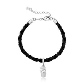 Esta pulseira foi desenvolvida com couro l trançado, um lindo pingente maciço de latão de leite e Revestimento Prateado. Um acessório versátil para ser utilizado no dia-a-dia.