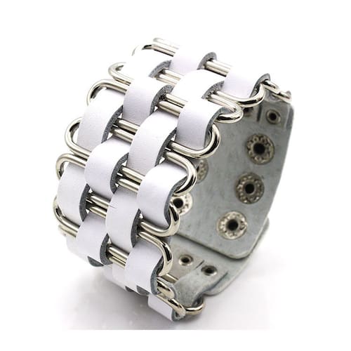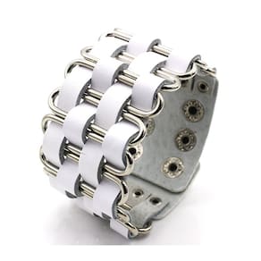 Material: couro PU Cor: branco, prata Tamanho do pacote: 10 cm x 7 cm x 2 cm Peso do pacote: 0,06 kg Lista de embalagem: 1 x pulseira branca Tamanho: comprimento 22 cm, largura 4 cm Peso: 58 g Material: PU Embalagem: 1 x pulseira Esta pulseira de couro PU branco ousado apresenta corrente de metal e detalhes em pinos, combinando elementos modernos e ousados para criar um acessório moderno adequado para homens e mulheres. Feita de couro PU de alta qualidade, esta pulseira é durável e leve, projetada para durar até o uso diário, mantendo sua aparência elegante e moderna. A pulseira é ajustável para garantir um ajuste perfeito para uma variedade de tamanhos de pulso. Possui fechos de botão seguros que proporcionam uma fixação confortável e firme, facilitando a colocação e a retirada. Ideal para moda casual e estilo rock, esse acessório é versátil e pode complementar uma ampla variedade de roupas, desde o uso diário até estilos mais ousados. Perfeita para quem adora tendências de moda únicas e ousadas, esta pulseira é um ótimo presente para aniversários, feriados ou qualquer ocasião especial, adicionando um toque moderno a qualquer guarda-roupa.