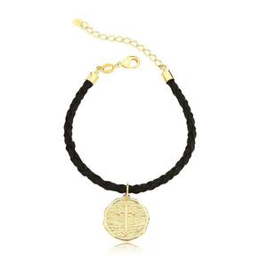 A VL traz nesta pulseira, o couro natural trançado na cor preta e uma linda medalha frente e verso com a Nossa Sra. Aparecida e uma Cruz. Desenvolvida com detalhes minimalistas e textura ao fundo, seu acabamento refinado recebeu um revestimento em Ouro, garantindo beleza e sofisticação à essa joia.
